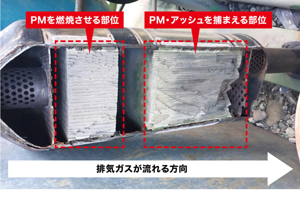 PM(スス)は触媒を使って燃焼させる事で無くなりますが、
